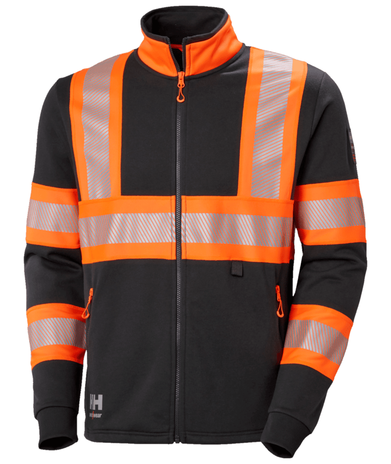 - Breite reflektierende Streifen an Armen, Brust und Schultern