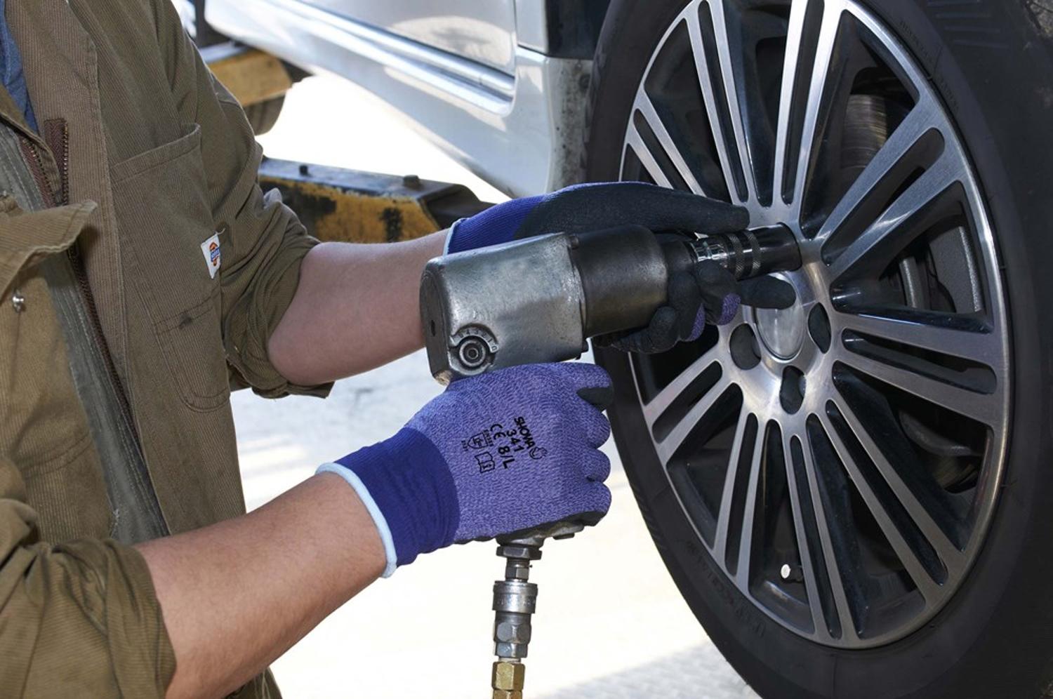 - Handflächenseite mit einer wasserdichten Latexbeschichtung