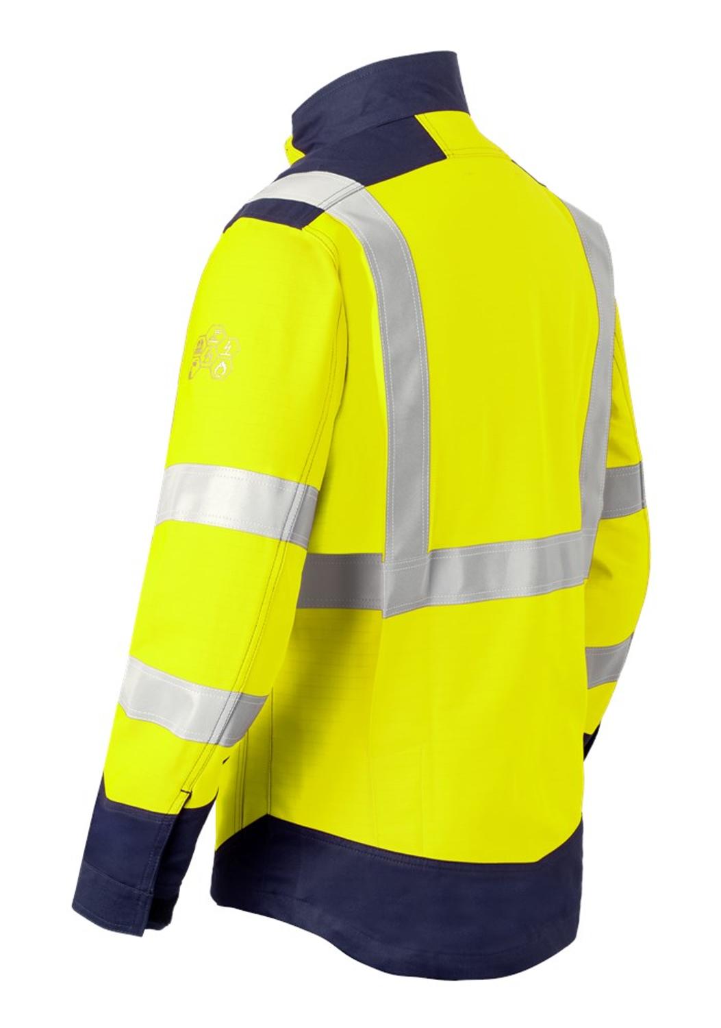 - 2 eingesetzte Brusttaschen mit Klappe und Druckknopf, wobei die rechte Brusttasche mit D-Ring für Ausweishalter ausgestattet ist
